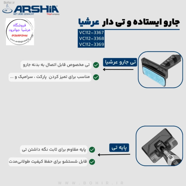 ویژگیهای کلیدی جاروبرقی ایستاده عرشیا 4 کاره مدل VC112-3367