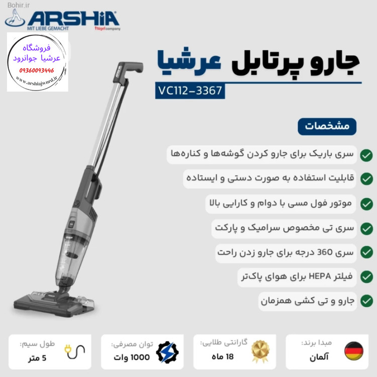 جاروبرقی ایستاده عرشیا 4 کاره مدل VC112-3367، یک محصول منحصر به فرد و کارآمد است