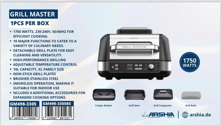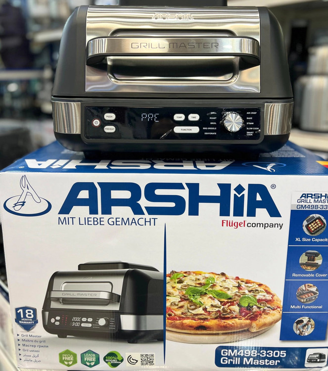 گریل عرشیا مدل GM498-3305 دستگاه باکیفیت، قدرتمند و هوشمند 1760 واتی است که با 10 برنامه طبخ، پخت 5 نوع مواد غذایی پروتئینی، دماسنج هوشمند، 5 سطح درجه حرارت و ظرف پخت 8.5 لیتری، سرخ کردن و کباب کردن غذاها در فضای باز را شبیه سازی کرده و این امکان را فراهم کرده به راحتی و سریع از غذاهای کبابی سالم و خوشمزه لذت ببرید.اگر به دنبال این هستید که از روشی سالم تر برای پختن غذاهای کبابی مورد علاقه تان بدون خطر قرار گرفتن در معرض سموم مضر ناشی از کباب کردن زغال و چوب استفاده کنید، این دستگاه بهترین انتخاب برای شما است. وعده های غذایی تان را با 75 درصد چربی کمتر بدون روغن های ناسالم سرخ کنید و از آشپزی و خوردن غذا لذت ببرید.