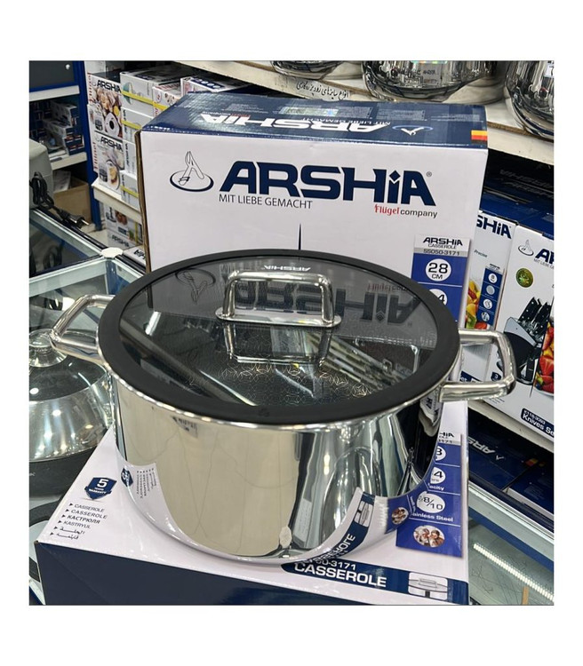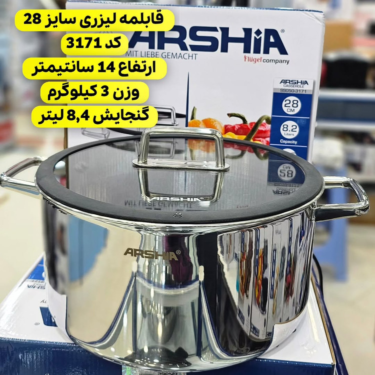 یکی از محصولات باکیفیت و پرطرفدار برند عرشیا است که برای پخت و پز انواع غذاها بسیار مناسب میباشد. این قابلمه با طراحی زیبا و کاربردی، به یکی از انتخابهای اصلی بسیاری از خانمهای خانهدار تبدیل شده است.