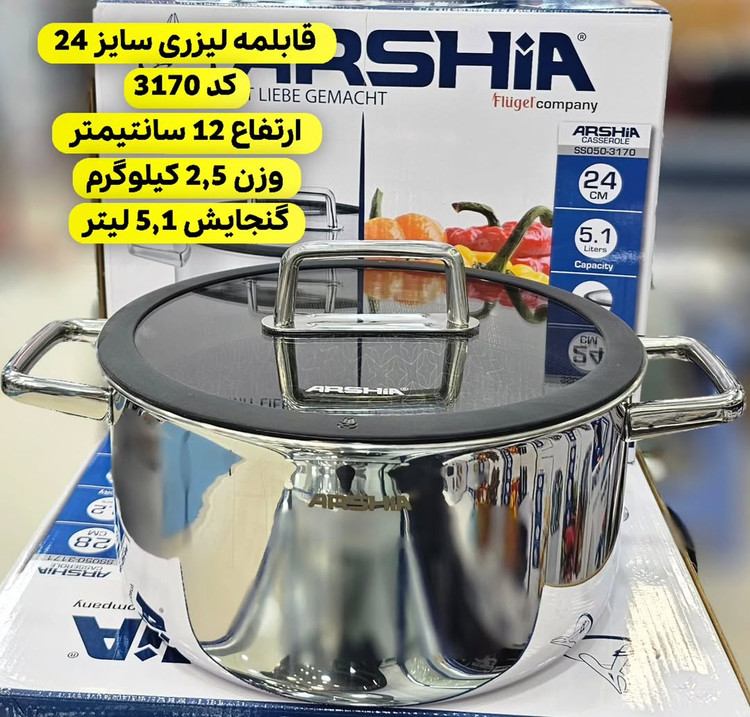 معرفی قابلمه تک استیل کف لیزری 24 سانتی عرشیا مدل ss050-3170