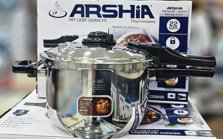 زودپز روگازی استیل دسته بلند 22 سانتی عرشیا 3137 با ظرفیت 5 لیتر، کیفیت بالا و کارایی، انتخابی ایدهآل برای خانوادههایی است که به دنبال پخت و پز سریع و آسان غذا هستند.