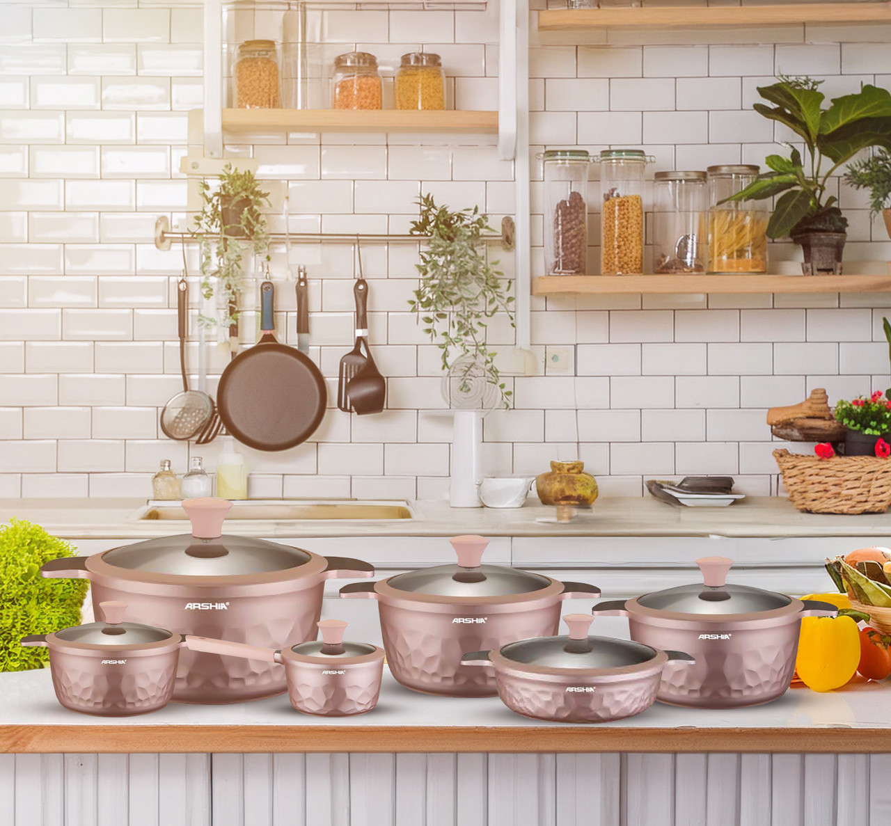 سریال پرفکت کیچن انتخابی شیک و رنگارنگ دای کست:این ظروف 12 تکه آلومینیومی رنگارنگ شیک، محیطی را به آشپزخانه شما می بخشد. دربهای شیشهای سکوریت شده به شما این امکان را میدهند که پیشرفت پخت و پز خود را بدون بلند کردن درب کنترل کنید، در حالی که طراحی هواکش از تجمع بیش از حد بخار جلوگیری میکند.