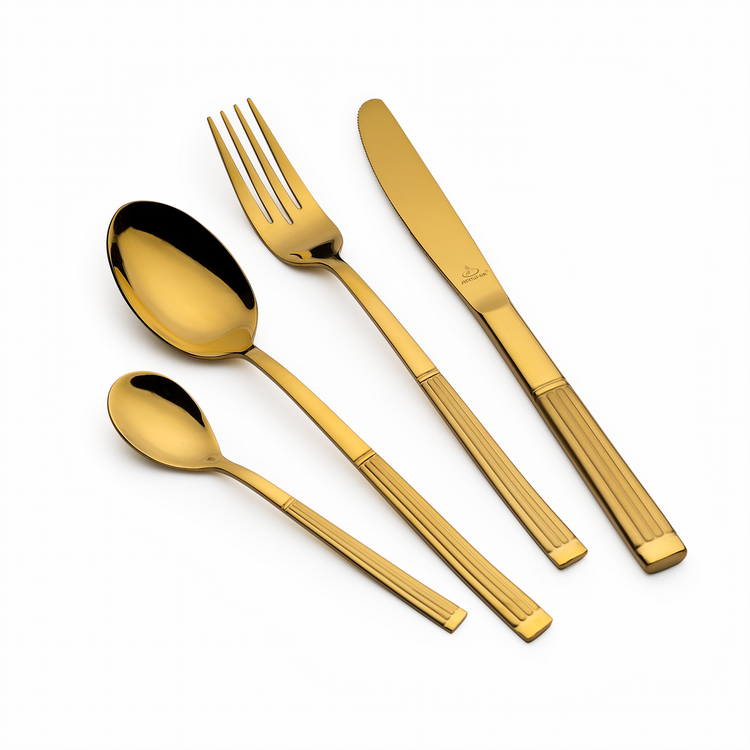 با سرویس قاشق و چنگال طلایی ۱۲۸ پارچه عرشیا، از یک تجربه غذاخوری مجلل لذت ببرید. این مجموعه باشکوه، جذابیت سلطنتی را با هنر بیعیب و نقص ترکیب میکند و آن را به مظهر تجمل تبدیل میکند. هر قطعه از استیل ضد زنگ با کیفیت بالا ساخته شده و با روکش طلایی جذابی مزین شده است، که ظرافت و پیچیدگی را به نمایش میگذارد و میز شما را به اوج میرساند.