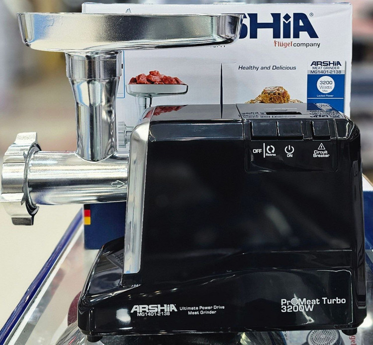 چرخ گوشت برقی عرشیا MG1401-2138 دارای فناوری پیشرفته و طراحی منحصر به فردی است. ابعاد این چرخ گوشت بسیار مناسب است که به فضای کمی نیاز دارد. این چرخ گوشت دارای توان 3200 وات است. این چرخ گوشت از سیستم چرخش معکوس موتور برخوردار است. زمانی که دهانه دستگاه مسدود شود با این قابلیت می توان آن را رها کرد. پایه های این چرخ گوشت ضد لغزش می باشند که مانع از سر خوردن چرخ گوشت می شود.