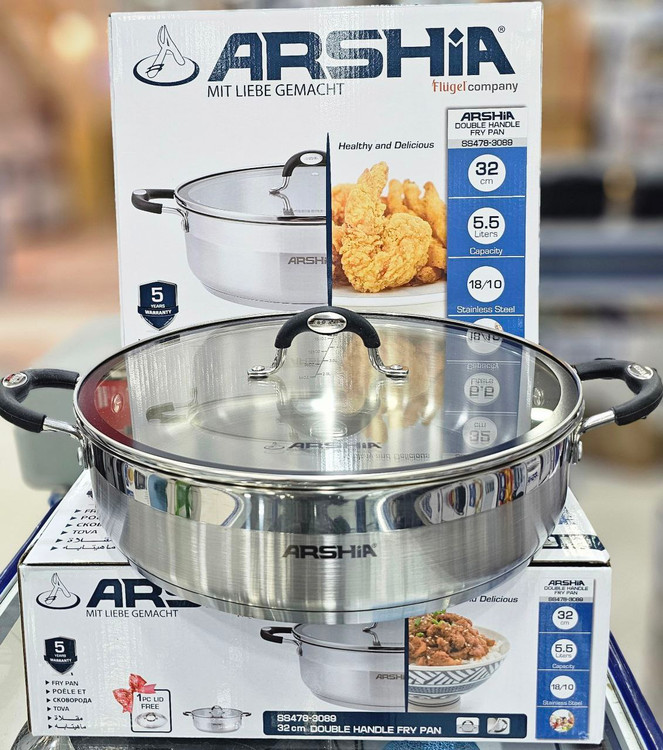 آشپزی لذتبخش با ماهیتابه دو دسته 32 سانت عرشیا مدل SS478-3089! این ماهیتابه با دو درب استیل مقاوم، مناسب برای پختوپز حرفهای و خانگی است. طراحی کاربردی و کیفیت بالای آن، تجربهای بینظیر در آشپزی به شما هدیه میدهد. انتخابی ایده آل برای هر آشپزخانهای! همین حالا خرید کنید و لذت ببرید!