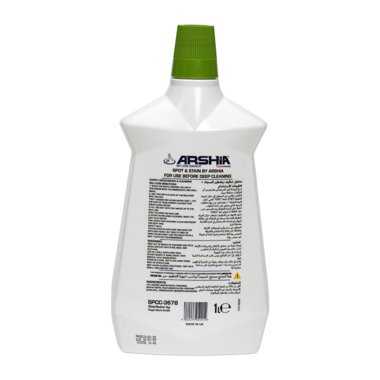 با محلول لکهبر عرشیا، زندگی را به خانه خود بازگردانید. فرمول قدرتمند و سریع خشکشوندهی ما، لکهها و مایعات کوچک را فوراً از روی روکش و پارچههای ظریف پاک میکند و هیچ اثری از چسبناکی باقی نمیگذارد. این محصول در برابر کثیفیها مقاوم اما در برابر الیاف ملایم است و تضمین میکند که مبلمان و فرشهای شما به زیبایی روز اول خود به نظر برسند. لکهبر فوری برای کثیفیها و مایعات کوچک.