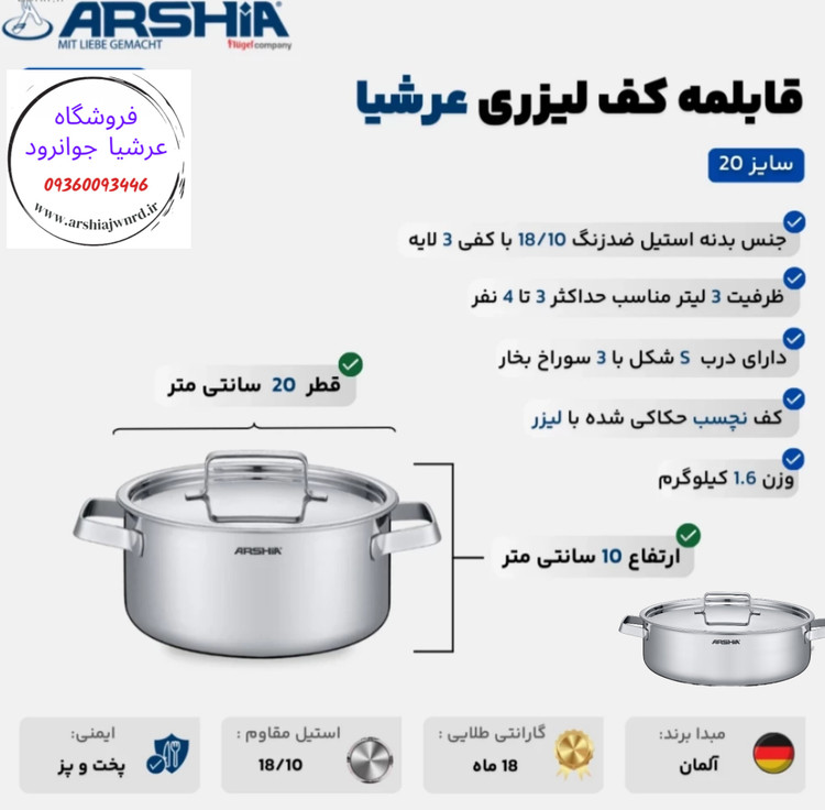 - جنس بدنه استیل ضدزنگ 18/10 با کفی استیل 3 لایه