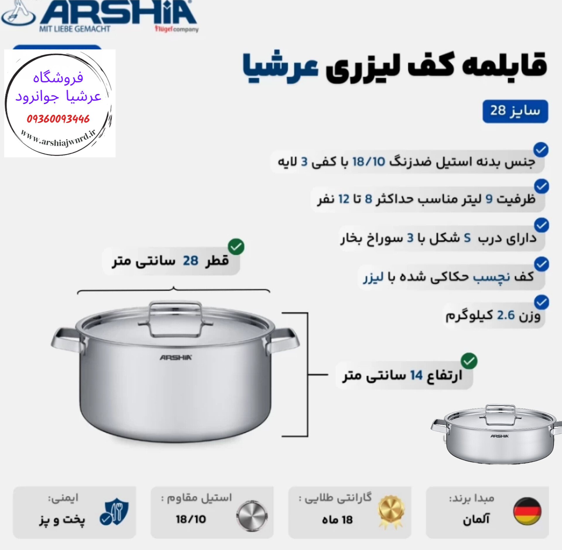- قابلمه ۲۸ × ۱۴ سانتیمتری با درب استیل ضد زنگ