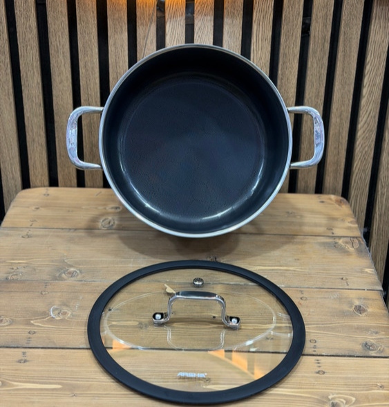 ساختار سه لایه برای توزیع یکنواخت حرارت، سازگار با انواع اجاقها از جمله القایی، دارای دستههای مقاوم به حرارت
