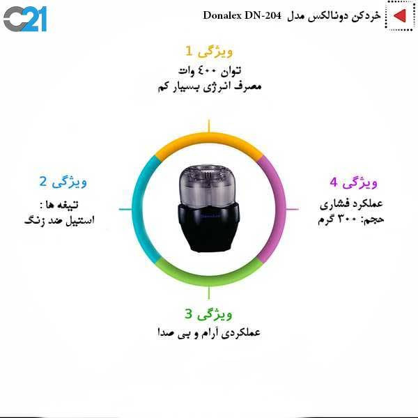 بدنه خرد کن Donalex dn-204 از جنس پلاستیک مرغوب بوده که نشکن بودن آن عمر بدنه را افزایش میدهد و ظرفیت کاسه آن ۳۰۰ گرم میباشد.شرکت دونالکس از شرکت های تولیدی و نوپا در سال ۲۰۱۹ با عرضه محصولات خانگی ویژه به بازار کشور آمده، این شرکت که خط تولید محصولاتش در کشور چین و تحت لیسانس ایتالیا ساخته شده از جدیدترین محصول خودش خردکن DN-204 رونمایی کرده. قابلیت خرد کردن مواد غذایی سخت مانند (میوه ها ، بادام ، گردو ،سبزیجات ،هویج ،سیب زمینی ،کلم ، پیاز ،انواع گوشت های بدون استخوان خام و پخته ) پیشنهاد ما به شما خرید این خردکن با کیفیت و عالی از فروشگاه جوانرود بازار با پایین ترین قیمت کشوری می باشد