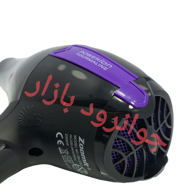 سشوار حرفه ای زومیت مدل ZOOMIT ZM-3203 ظاهر شیک و زیبایی دارد. بدنه آن به رنگ مشکی براق است و رنگ بنفش نیز در آن به کار رفته است.