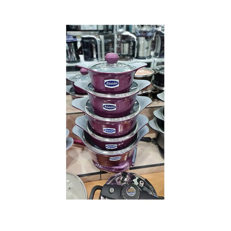 - در سرویس قابلمه گرانیتی زومیت (Zoomit) از مواد اولیه بسیار با کیفیتی استفاده شده که باعث افزایش دوام و طول عمر ظروف شما خواهد شد.ظروف سرویس زومیت دارای ضخامت بسیار بالایی هستند نسل جدید سرویس پخت و پز زومیت با قابلیت ذخیره انرژی تا ۳۰% عرضه شده است. محصولات ZOOMIT در بروزترین خطوط تولیدی در کوره های خاص رنگ شده وتا ۳۵۰ درجه در برابر حرارت مستقیم مقاومت میکنند. با ما باشید جهت معرفی این سرویس.