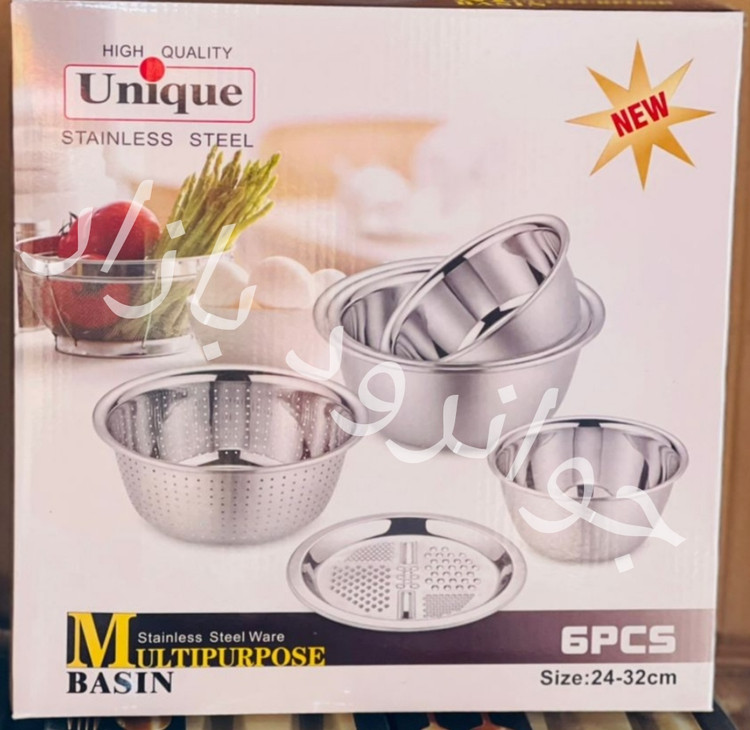 این محصولات با کیفیت از یونیک که طول عمر بسیار بالایی نیز دارند شامل ۶ پارچهی بسیار مهم و ضروری مانند؛ صافی، کاسه و رنده میباشد. صافی در این سرویس دارای قطر ۲۸ سانتیمتر است که در داخل آن میتوانید انواع میوه و سبزیجات را به آسانی بشویید. قطر صافیها در این سرویس شامل؛ ۲۴، ۲۶، ۳۰، ۳۲ سانتیمتر است و به کمک آنها میتوانید برنج و ماکارونی را به راحتی آبکش نمایید. رندهی این سرویس دارای ۲ نوع خردکن مختلف و ۲ نوع تیغهی ورقهای است. از این تیغه میتوانید برای ورقه کردن سیبزمینی و درست کردن چیپس خانگی خوشمزه استفاده نمایید. کاسه، صافی و رنده به گونهای طراحی شدهاند که به راحتی بر روی یکدیگر قرار میگیرند. این سرویس بینظیر قابل شستشو در ماشین ظرفشویی نیز میباشد.