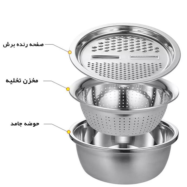 جنس این سرویس فوقالعاده و کاربردی از استیل ضدزنگ است. این محصولات با کیفیت از دوام و طول عمر بالایی بهره میبرند و با وزن کلی ۲ کیلوگرم به راحتی قابل حمل و قابل جابهجایی میباشند. قرار گرفتن رنده به صورت صفحهای بر روی کاسه، عمل رنده کردن را آسان و بدون خطر میکند و در زمان کوتاهتری میتوانید موادغذایی و سبزیجات را رنده نمایید و یک سالاد لذیذ و خوشمزه آماده کنید.