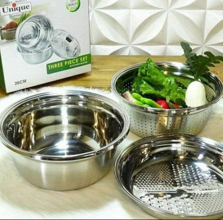 این محصولات با کیفیت از یونیک که طول عمر بسیار بالایی نیز دارند شامل ۳ پارچهی بسیار مهم و ضروری مانند؛ صافی، کاسه و رنده میباشد. صافی در این سرویس دارای قطر ۳۰ سانتیمتر است که در داخل آن میتوانید انواع میوه و سبزیجات را به آسانی بشویید. قطر صافی در این سرویس همچنین ۳۰ سانتیمتر است و به کمک آن میتوانید برنج و ماکارونی را به راحتی آبکش نمایید. رندهی این سرویس دارای ۲ نوع خردکن مختلف و ۲ نوع تیغهی ورقهای است. از این تیغه میتوانید برای ورقه کردن سیبزمینی و درست کردن چیپس خانگی خوشمزه استفاده نمایید. کاسه، صافی و رنده به گونهای طراحی شدهاند که به راحتی بر روی یکدیگر قرار میگیرند. این سرویس بینظیر قابل شستشو در ماشین ظرفشویی نیز میباشد.