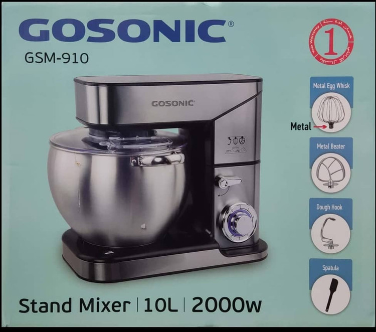 همزن گوسونیک مدل GSM-910 همزنی کاربردی و بسیار با کیفیت است که به کمک آن میتوانید نیاز های یک سرآشپز را برطرف نمایید. این محصول دارای یک مخزن از جنس استنلس بوده که دارای حجم ۱۰ لیتر میباشد. همزن گوسونیک مدل GSM-910 از موتور قدرتمند ۲۰۰۰ وات بهره میبرد که قابلیت های چند منظوره مانند؛ سری خمیر زن، سری ورز دهنده و سری همزن را داراست. این همزن شرکت گاسونیک دارای پنل کاربری چرخشی در ۶ سرعت است و میتوانید غذاهای خوشمزهای مانند پنکیک و خمیر، اسموتی، سس پنیر، خامه، کیک و … را با آن تهیه نمایید.شرکت گوسونیک در همزن گوسونیک مدل GSM-910 از قابلیت مهمی مانند ضد پاشش گرد و غبار، سیستم قفل ایمنی و پایه ضد لغزش بهره برده است که اطمینان از داشتن یک تجربه ایمن هنگام استفاده از دستگاه را برای کاربر فراهم مینماید.
