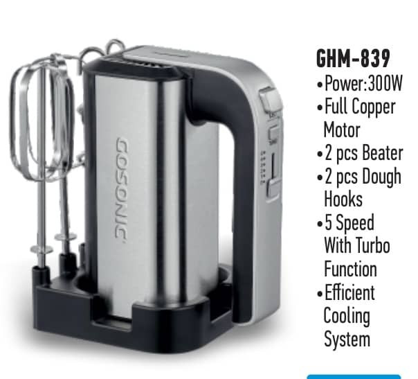 کمپانی گوسونیک با تولید همزن گوسونیک مدل GHM_839 آرامش و راحتی را به خانهی شما هدیه میدهد. این همزن دستگاهی بسیار کاربردی جهت آماده کردن کیک، شیرینی، دسر، کوکی، سس و ... میباشد که از موتوری قدرتمند با توان ۳۰۰ وات بهره میبرد. این دستگاه علاوهبر مصارف خانگی، برای کافیشاپها، رستوران ها و قنادی ها نیز کارایی زیادی دارد. بدنهی این همزن کاملا مقاوم بوده دارای ۲ نوع سری متنوع همزن و خمیر زن میباشد. کمپانی گوسونیک به منظور راحتی و آسایش شما یک پایهی نگهدارنده برای این دستگاه طراحی نموده است که در حین کار با دستگاه سبب جلوگیری از ریخت و پاش میگردد.