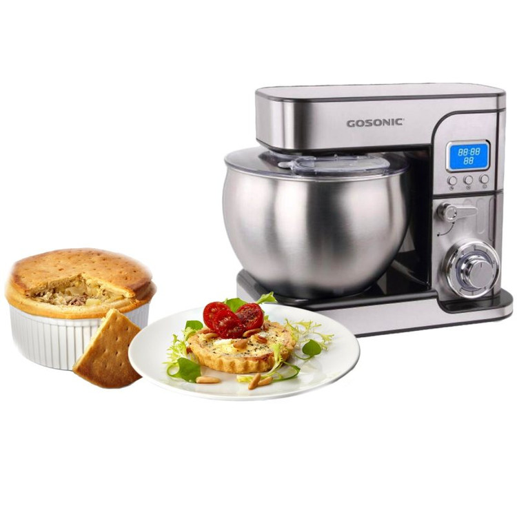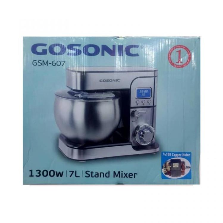 همزن گوسونیک دیجیتال مدل GSM-607 با طراحی خاص و چشمنواز خود، برای هر آشپزخانهای با هر دکوری کاملا شیک است. گنجایش مخزن این دستگاه ۷ لیتر بوده که قابلیت هم زدن مقدار زیادی موادغذایی را دارد. در قسمت بالایی دستگاه یک اهرم قرار گرفته که به کمک آن میتوانید سرعت دستگاه را در ۶ حالت مختلف تنظیم کنید. این دستگاه دارای ۳ نوع میلهی متفاوت جهت ورز دادن، خمیر زدن و هم زدن انواع مختلف موادغذایی میباشد. جنس این میلهها از استیل ضد زنگ بوده که دوام و ماندگاری بالایی دارند. قسمت های مختلف این همزن به راحتی از هم جدا شده و قابل شستشو در ماشین ظرفشویی هستند. بدنهی دستگاه از جنس پلاستیک فشرده و استیل ضدزنگ است که دوام بسیار بالایی دارند. بر روی بدنهی این دستگاه یک پنل نمایشگر قرار گرفته است که تنظیمات دستگاه از طریق آن قابل مشاهده میباشد.