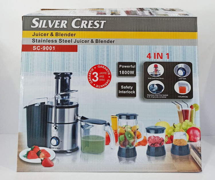آبمیوهگیری 4کاره سیلورکرست SC-9001 دارای طراحی شیک و همهپسند بوده که زیبایی و جذابیت را به آشپزخانهی شما هدیه میدهد. این دستگاه دارای توان ۲۰۰۰ وات بوده که در یک چشم به هم زدن یک نوشیدنی تازه و خنک را برای شما آماده میکند. این آبمیوه گیری چند منظوره قابلیت خرد کردن، مخلوط کردن و آسیاب کردن انواع موادغذایی را داشته و یکی از وسایل کاربردی و ضروری برای هر آشپزخانهای ست. همچنین این دستگاه دارای ۲ دور سرعت مختلف بوده که به دلخواه میتوانید از دور سرعت کند و یا دور سرعت بالای آن استفاده کنید. بدنهی این آبمیوه گیری از جنس پلاستیک و استیل بوده که دارای طراحی و نمای بسیار فوقالعادهای است و به راحتی با دیگر لوازم شما در آشپزخانه ست میگردد. جنس تیغه ها در هر ۴ قسمت از استیل ضد زنگ بوده که دارای مقامت بالایی هستند. از قبیل کارایی های این دستگاه ۴ کاره میتوان به این موارد اشاره کرد؛ آسیاب کردن و پودر کردن انواع دانه ها، خردکردن میوه و سبزیجات، مخلوط کردن چند میوه وآماده کردن یک نوشیدنی بسیار مفید و سالم و ...