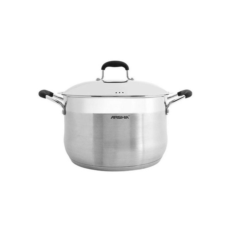 قابلمه استیل عرشیا مدل SS145-1269 از لوازم با کیفیت عرشیا است که دارای بدنهای از جنس استیل ضد زنگ ۱۸/۱۰ میباشد. جنس کف این قابلمه ها از آلومینیوم ریخته گری دایکاست ۵ لایه بوده که مانند شعله پخشکن عمل کرده و موجب پخت یکنواخت غذا میگردد. وزن این قابلمهها کاملا متناسب است و به آسانی قابل حمل میباشد. همچنین میتوانید آنها را در ماشین ظرفشویی بشویید. این ظروف پخت و پز استیل ضد زنگ از آلیاژی از فلزات ساخته میشوند که معمولاً شامل ترکیبی از فولاد، کربن، نیکل و کروم است. فولاد ضد زنگ برای استفاده طولانی مدت، دوام و محافظت میکند. ARSHIA بهترین ظروف آشپزی را برای شما به ارمغان میآورد. سطح صاف و محکم این قابلمه ها احتمال پوسته پوسته شدن و شکستن آن ها را کاهش میدهد. ظروف استیل در بین آشپز های حرفه ای بسیار محبوب هستند.