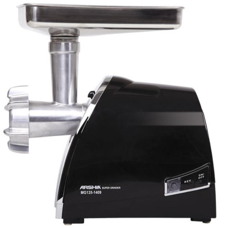 چرخ گوشت عرشیا مدل MG135 1409 دستگاهی پر قدرت با توان ۲۴۰۰ وات است که به کمک آن میتوانید در یک چشم به هم زدن سوسیس خانگی سالم و خوشمزه آماده کنید. این چرخ گوشت دارای یک دور سرعت است و همهی موادغذایی را با یک دور سرعت خرد و آسیاب مینماید. سیستم چرخش معکوس یکی دیگر از قابلیت های این دستگاه است و در صورتی که محفظهی تیغه مسدود گردد، به کمک چرخش معکوس میتوانید این مشکل را به سادگی رفع کنید. وزن این چرخ گوشت ۳.۸ کیلوگرم است که جزء دستگاه های حمل آسان طبقهبندی میگردد. این چرخ گوشت قابلیت خرد کردن ۱.۲ کیلوگرم موادغذایی را در هر دقیقه دارا میباشد.