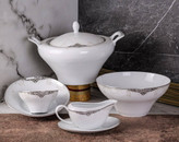 سرویس چینی غذاخوری پردیس ۱۰۴ تیکه ۱۲ نفره قالب رومنس کد 240A طرح سورنتو پلاتین