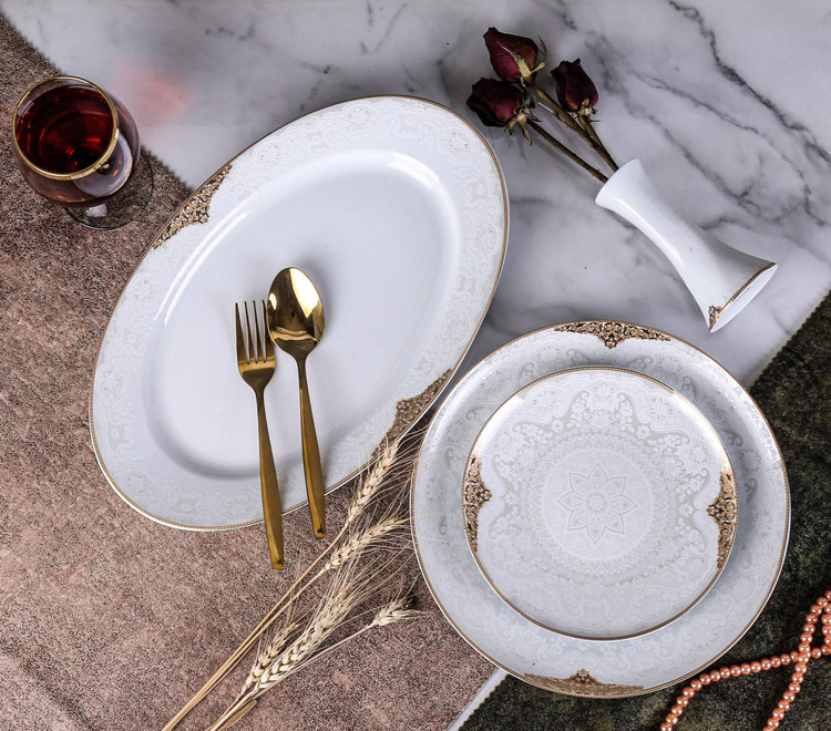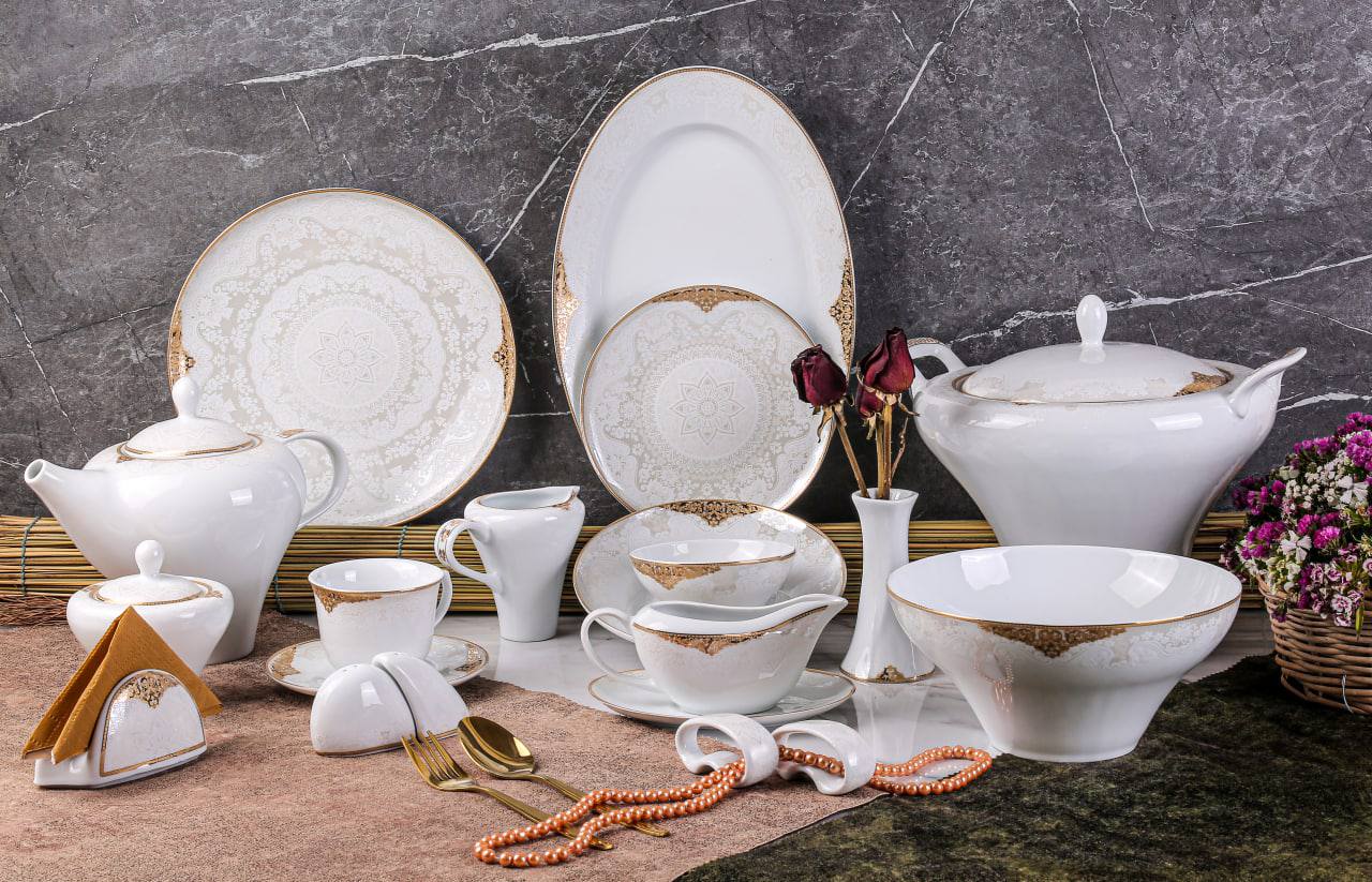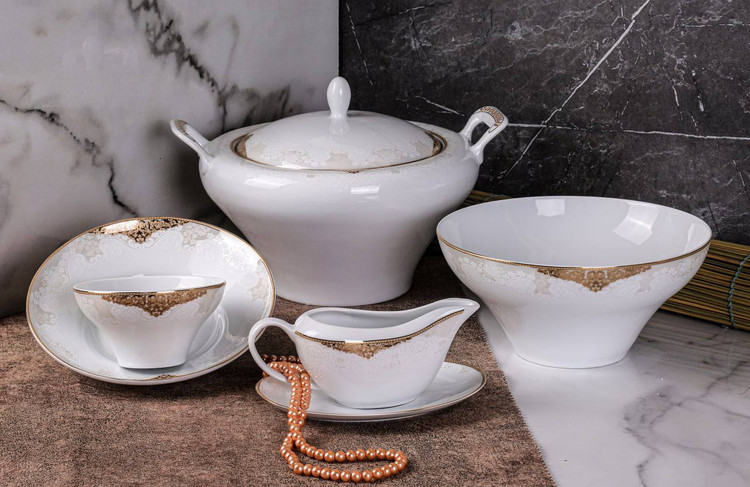 ظروف غذا خوری یکی از لوازم ضروری برای هر خانه و آشپزخانهای میباشد. استفاده از ظروف لوکس میتواند حس خوب میا کردن یک وعده غذای لذیذ و خوشمزه را به همراه خانواده و دوستان برای شما به ارمغان بیاورد. هنگامیکه سفرهای چند نفره میچینید، ست بودن ظروف یکی از موارد بسیار مهم در زیبا بودن سفرهی شما بوده که سبب چشمنوازی سفره میگردد. پس بهتر است از ظروف ست و خاص استفاده نمایید. ظروف چینی پردیس بهترین و خاصترین موارد را ارائه میدهند که یک برند بسیار خوشنام در زمینهی ظروف چینی میباشند. سرویس چینی غذاخوری پردیس 240B یکی از خاصترین ظروف غذا خوری بوده که سبب زیبایی و چشمنوازی سفرهی شما میگردد. این سرویس شامل ۱۰۴ پارچه است که قابل استفاده برای ۱۲ نفر میباشد. قالب این ظروف گرد است و از چینی مرغوب کاشان ساخته شده است. رنگ این سرویس فوقالعاده و بینظیر سفید با لبههای طلایی بوده و برجستگی هایی در قسمت سفید وجود داشته که این ظروف را بسیار خاص کرده است.