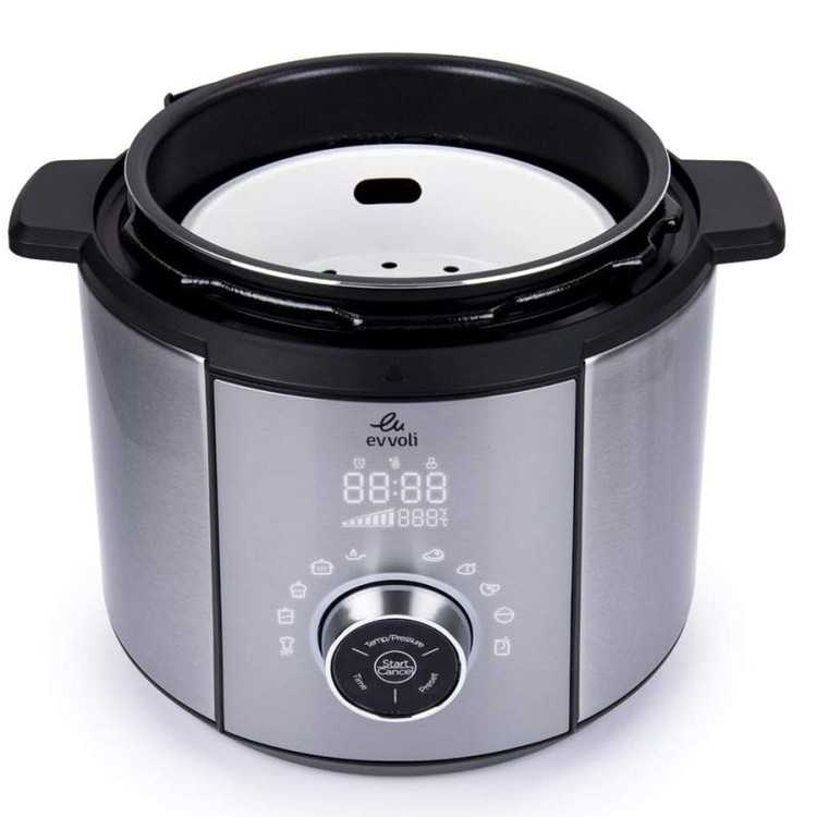 توان مصرفی در این زودپز ۱۱۰۰ وات بوده که غذا ها را در کوتاه ترین زمان برای شما آماده میگرداند و امکان تهیهی غذای سالم و خانگی را فراهم میکند. زودپز برقی ایوولی ایتالیا مدل Evvoli EVKA-PC6010S دارای ۱۰ برنامهی پخت از پیش تعیین شده بوده و تنها با یک لمس میتوانید غذا ها را آماده کنید. سیستم گرم نگهدارنده در این دستگاه غذا ها را تا چند ساعت پس از آماده شدن نیز گرم نگه داشته و میتوانید از غذای تازه لذت ببرید. به لطف تایمر ۲۴ ساعته در این زودپز حرفهای و خاص میتوانید زمان پخت غذا ها را تنظیم کرده و با خیال راحت به کارهای دیگر رسیدگی نمایید. پس اگر شما نیز جزء افرادی هستید که از غذا های خانگی، سالم و لذیذ لذت میبرید، لازم است یک زودپز برقی ایوولی ایتالیا مدل Evvoli EVKA-PC6010S را در آشپزخانه داشته باشید.