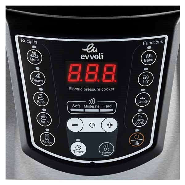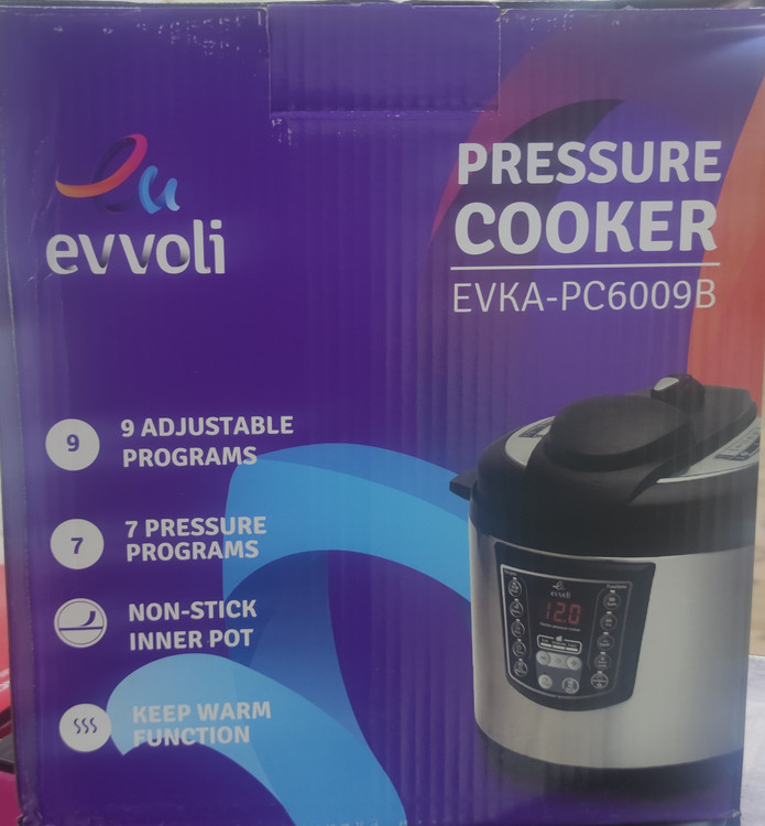 زودپز برقی ایوولی ایتالیا مدل Evvoli EVKA-PC6009B یکی از دستگاه های حرفهای برند ایوولی بوده که دارای طراحی ظاهری شیک و خاص است. به کمک این زودپز برقی میتوانید انواع موادغذایی را بپزید. این دستگاه دارای بدنهی مشکی/سیلور بوده که زیبایی آشپزخانهی شما را دو چندان میکند. توان مصرفی در این زودپز ۱۰۰۰ وات است و غذا را در زمانی کوتاه آماده میکند. این دستگاه دارای ۹ برنامهی پخت از پیش تعیین شده است که تنها با یک لمس میتواند غذا های شما را آماده کند.