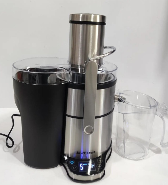 آبمیوه گیر سیلور کرست MY_629CK دستگاهی با ظاهری شیک و امروزی است که با بدنه ای از جنس استیل و پلاستیک مشکی است که با هر دیزاینی ست میشود. پارچ آبمیوه گیر، ظرف خردکن و آسیاب این دستگاه از جنس شیشه شفاف بوده که زیبایی آن را تکمیل میکند. صفحه نمایش این آبمیوه گیر در قسمت پایین دستگاه قرار داشته که دیجیتالی و البته تمام لمسی است که میتوانید تنظیمات مختلف را اعمال کنید. ورودی میوه این آبمیوه گیر شعاع بزرگی داشته که میتوانید یک سیب را درسته داخل دستگاه قرار دهید.
