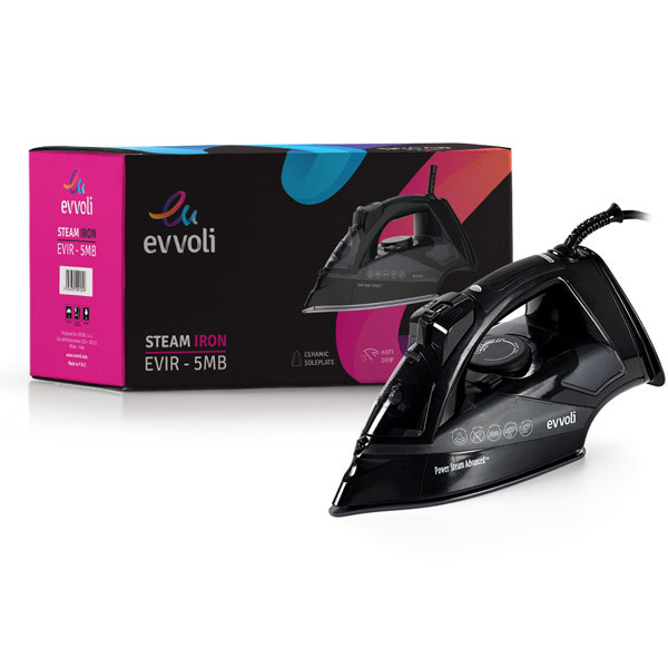 اتوی بخار ایوولی EVIR-5MB دارای عملکرد بخار عمودی است که به شما امکان میدهد لباس های خود را با سهولت و کارایی باورنکردنی اتو کنید. این اتو همچنین دارای عملکرد انفجار بخار است که از چین های سرسخت روی لباس مراقبت میکند. برای از بین بردن ناخالصی ها، ویژگی خود تمیز شوندگی این اتو آب داغ و بخار را از سوراخ ها خارج میکند. خاصیت ضد چکه این اتوی بخار باعث قطع جریان آب در مواقعی که دما برای تولید بخار کافی نیست. به این ترتیب هیچ چکه ای از کفی وجود نخواهد داشت. همچنین اگر این اتو را برای مدت طولانی بدون مراقبت رها کنید، قابلیت خاموش شدن خودکار اتو را برای آرامش شما خاموش میکند.