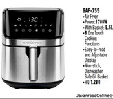 یکی از سرخ کن های بدون روغن مدل GAF-755 گوسونیک است که دارای توان 1700 وت است و همین موجب میشود بتوانید هر نوع خوراکی را به کمک آن سرخ کنید. ظرفیت 6.5 لیتری این دستگاه برای خانواده های پرجمعیت نیز مناسب است. 8 برنامه از پیش تعیین شده این سرخ کن را محصولی پرطرفدار کرده است که بدون کمترین مشکلی بتوانید مواد غذایی مورد نیازتان را بدون کمترین روغن ممکن سرخ کنید.