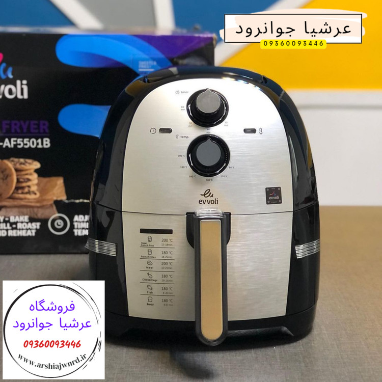 سرخ کن رژیمی ایوولی EVKA-AF5501B با بدنهی سیلور/مشکی جذابیت آشپزخانهی شما را دو چندان میکند و به سبب ترکیب رنگ زیبا به راحتی با دیگر لوازم آشپزخانه ست میشود. گنجایش این سرخ کن ۵.۵ لیتر بوده که برای مهمانی های با جمعیت بالا نیز میتواند به شما کمک کند در زمان کمتری غذا ها را آماده کنید. در قسمت بالایی دستگاه ۲ عدد ولوم چرخشی بوده که ولوم بالایی برای جهت تعیین تایمر و ولوم پایینی برای مشخص کردن درجه حرارت از ۸۰ تا ۲۰۰ درجهی سانتیگراد است. ابعاد این سرخ کن ۳۴x۳۰x۳۱ سانتیمتر است که در گوشه کوچکی از آشپزخانه جای میگیرد. سبد این سرخ کن براحتی جدا شده و قابل شستشو نیز میباشد.