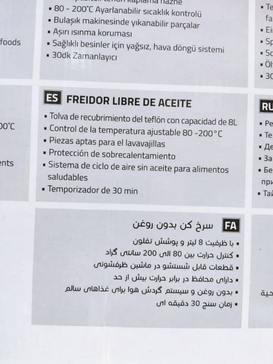 دیگر ویژگی های سرخ کن بدون روغن نوال FRY-5115