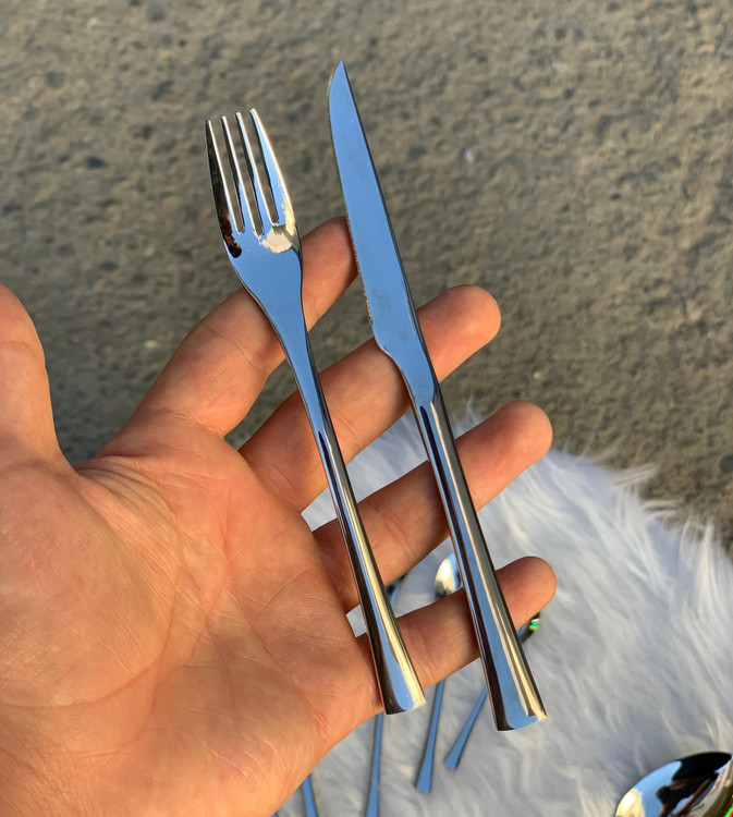 ضخامت این لوازم ۴ میلیمتر بوده و از استحکام بالایی برخوردار هستند. اندازه این قاشق و چنگالها ۲۰ سانتیمتر میباشد و بسیار خوش دست و سبک هستند. جنس این سرویس زیبا از استیل 18/10 ضد زنگ است که دوام و ماندگاری بالایی نیز دارد. این استیل آهنربا نگیر بوده و بسیار مرغوب میباشد.