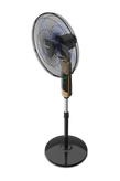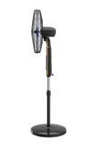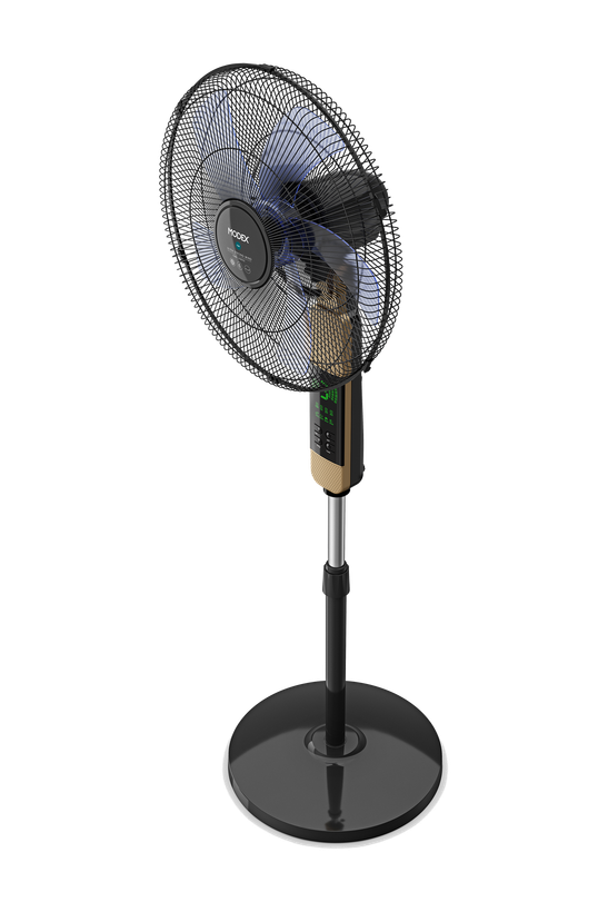 پنکه برقی مودکس مدل Modex FA1218 دارای طراحی شیک و خاصی بوده که حس جالب نوستالژیک بوده را به شما انتقال میدهد. این دستگاه دارای یک پایهی قابل تنظیم است که به صورت دایرهای و صفحهای میباشد و سبب ایستادن آسان دستگاه بر روی سطوح مختلف میشود که جنس آنها فلزی و پلاستیکی میباشد. این پنکهی بینظیر با رنگ مشکی/طلایی سبب ایجاد زیبایی خاصی در محیط میگردد. پنکه برقی مودکس مدل Modex FA1218 دارای ۵ پره بوده که از جنس پلاستیک فشرده بوده و از ماندگاری بالایی برخوردارند. قسمت تنکه که به دور پره ها قرار گرفته است، سبب جلوگیری از هر گونه آسیب احتمالی در حالی که دستگاه روشن است میباشد. بر روی پایهی این پنکه چند دکمه تعبیه شده است که برای خاموش/روشن کردن و تنظیم سرعت چرخش پره های پنکه در ۳ حالت مختلف است. در کنار دکمهها شاهد یک صفحه نمایش LED هستیم که تنظیمات و نوع سرعت را میتوانید از طریق آن مشاهده کنید. همچنین قسمت پره ها قابل تنظیم بوده و میتوانید شیب دستگاه را تنظیم نمایید.