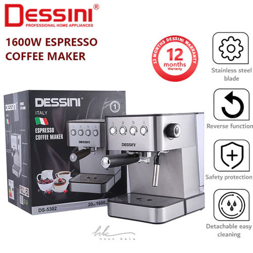 اسپرسو ساز دسینی ۲۰ بار مدل DS-5302 دارای طراحی مدرن و منحصر به فردی است که با موتوری قدرتمند با توان ۱۶۰۰ وات و فشار بخار ۲۰ بار میتواند نوشیدنی های بر پایهی شیر و اسپرسو را آماده کند. این دستگاه با گنجایش مخزن آب ۱.۵ لیتر امکان آماده کردن ۱۰ فنجان قهوهی لذیذ را برای شما فراهم میکند. این اسپرسوساز دارای یک سینی چکه گیر است که از ریخت و پاش در هنگام آماده شدن نوشیدنی جلوگیری میکند. توسط سیستم گرم نگهدارنده میتوانید فنجان را قبل و بعد از سرو نوشیدنی دلخواه گرم نگهدارید. اسپرسو ساز دسینی ۲۰ بار مدل DS-5302 مجهز به نازل بخار است که توسط آن میتوانید کف شیر تازه را در زمانی کوتاه تهیه کنید. به کمک این اسپرسوساز میتوانید همهی نوشیدنی هایی که بر پایهی اسپرسو و شیر هستند مانند؛ قهوه اسپرسو، کاپوچینو، لاته، کف شیر، آمریکانو، ماکیاتو، آب و ... را در یک چشم به هم زدن آماده نمایید.