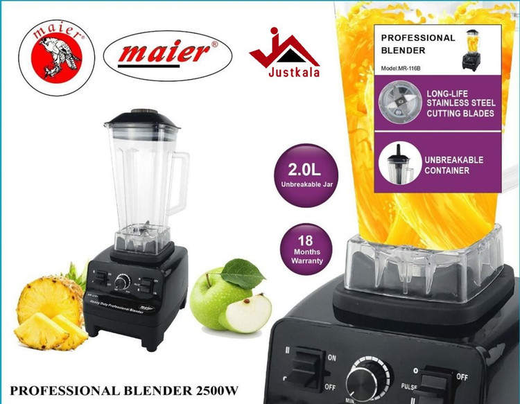 مخلوط کن مایر ۱۵۰۰ وات مدل MR-116 یک محصول باکیفیت و بسیار کاربردی از کمپانی سیلور کرست بوده که در یک چشم به هم زدن امکان آسیاب و مخلوط کردن انواع موادغذایی را به شما میدهد. توان این دستگاه ۱۵۰۰ وات بوده که به کمک آن میتوانید موادغذایی سخت و منجمد را هم آسیاب کنید. این دستگاه دارای ۱۵ دور سرعت مختلف بوده که قابلیت چرخش ۳۲۰۰۰ دور در دقیقه را داشته و از این رو برای مصارف غیر خانگی مانند کافیشاپ ها نیز کاربرد دارد. این مخلوط کن دارای ۴ تیغه از جنس استیل ضد زنگ میباشد که به دلیل مقاومت بالا قابلیت خرد و آسیاب کردن انواع موادغذایی را دارد. پارچ این مخلوط کن دارای گنجایش ۲ لیتر است که به راحتی برای مهمانی ها و دورهمی های شما امکان آماده کردن یک نوشیدنی خنک در یک روز گرم تابستانی را فراهم میکند. به کمک این دستگاه میتوانید کارهایی از قبیل؛ تهیهی انواع سس ها، تهیهی نوشیدنی ها، آماده کردن ملات سوپ، تهیهی غذای کودک، انواع شیک و کوکتل، خرد کردن سبزیجات و انواع دیگر موادغذایی را انجام دهید.