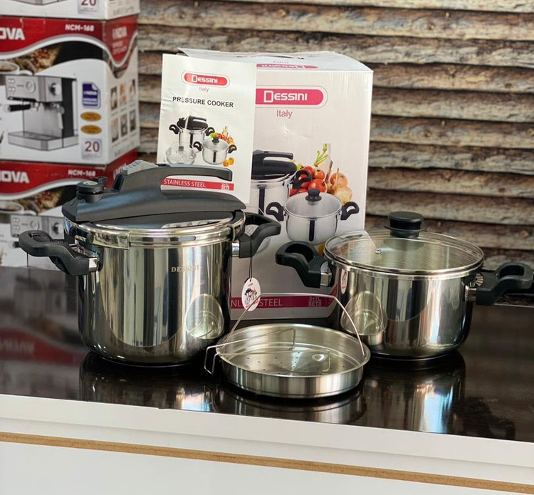 زودپز دوقلو رو گازی دسینی دستگاهی شیک با ظاهری مدرن است که به کمک آن میتوانید غذا ها را در زمانی کوتاه آماده کنید. این سرویس ۲ عددی جذاب و شیک موجب میشود غذا ها را در زمانی کوتاه آماده نمایید. این زودپز دارای ظرفیت مخزن ۷ لیتر است که میتوانید یک وعده غذا برای ۱۲-۱۴ نفر آماده کنید و یک قابلمهی کوچک ۵ لیتری نیز دارد که بسیار مقاوم و کاربردی بوده و از جنس استیل ضد زنگ میباشد. به لطف این دستگاه میتوانید دوستان و خانواده را به صرف یک وعده غذای خوشمزه و لذیذ دعوت کرده و از یک دورهمی ایدهآل لذت ببرید. رنگ سیلور در این زودپز بسیار خاص بوده و میتوانید به آسانی آن را با هر دکوراسیونی هماهنگ نمایید. این زودپز دارای درب استیل و سوپاپ اطمینان است که سبب افزایش ایمنی شما در هنگام کار با آن میگردد. همچنین مجهز به یک درب شیشهای نیز بوده و میتوانید به عنوان قابلمه از آن استفاده نمایید. واشر سیلیکونی موجب چفت شدن کامل درب بر روی بدنهی دستگاه میگردد. همچنین زودپز دوقلو رو گازی دسینی مجهز به یک سینی بخار پز است که توسط آن میتوانید غذاهای سالمتری را آماده کنید.