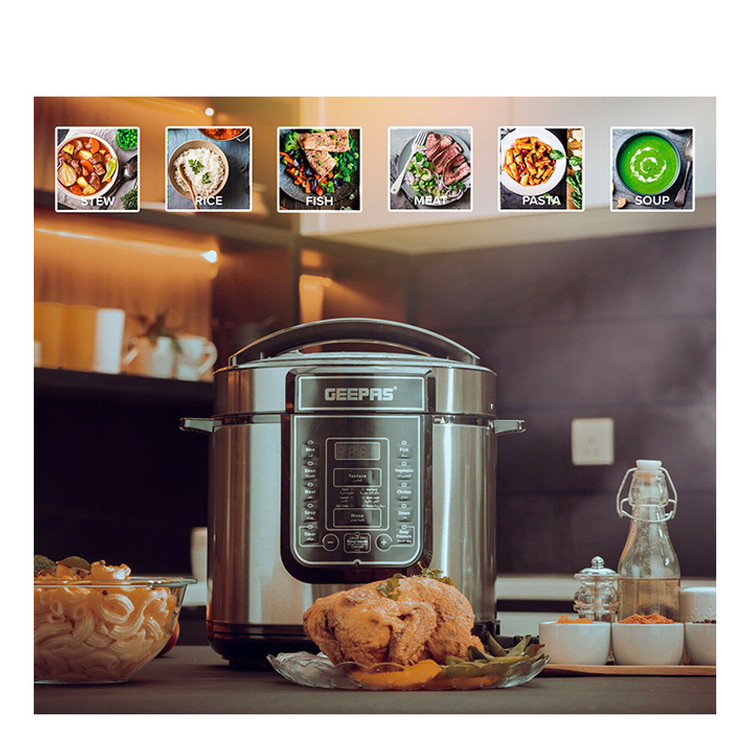 زودپز دیجیتالی جیپاس مدل GMC5326 حرفهای دارای طراحی شیکی است که با قرار دادن آن در محیط، فضا را زیبا میگرداند. هنگام پخت و پز تحت فشار، درب فوق ایمن را فقط میتوان پس از تخلیه تمام فشار برداشت. درب قفل دار، با دسته حمل محکم، به این معنی است که این زودپز دیجیتالی جیپاس مدل GMC5326 را میتوان به راحتی برای وعده های غذایی در حال حرکت حمل کرد. ظرفیت بزرگ 6 لیتری میتواند به راحتی نیازهای کل خانواده را برآورده کند، با دستور ما به شما کمک میکند تا انواع غذاهای خوشمزه را در مهمانیها و گردهمایی خانوادگی با هم به اشتراک بگذارید.