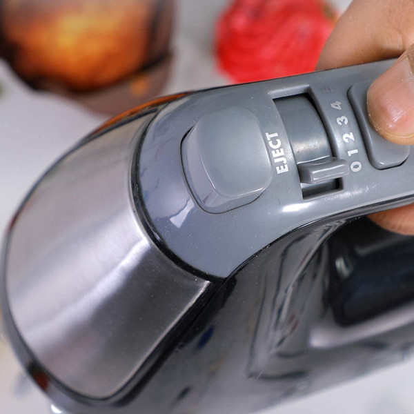 مهمترین پارامتر میکسرهای غذا سرعت است. همزن دستی جیپاس مدل GHM43020 دارای 5 سرعت میباشد. پنج سرعت برای تولید انواع محصولات کافی است. مثلاً توصیه میشود سفیده تخم مرغ را ابتدا با کمترین سرعت هم بزنید و به تدریج آن را به حداکثر برسانید. خامه مایع با سرعت بالا بهتر و سریعتر زده میشود. گاهی اوقات لازم است هر مادهای را با دقت مخلوط کنید، سپس بهترین راه استفاده از سرعت کم است. دکمه shift روی دسته همزن دستی برقی قرار دارد و با حرکت یک انگشت تغییر میکند.