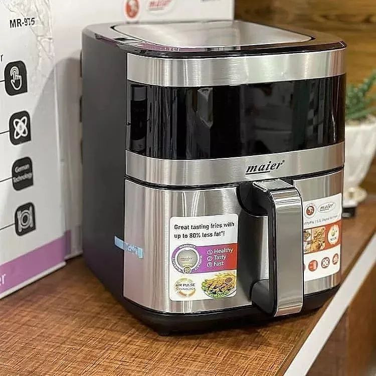 سرخ کن مایر مدل MR-975 از هوای گرم با گردش سریع برای پخت غذا به جای روغن استفاده میکند. غذا را سالم نگه میدارد و سطح کلسترول پایینی ارائه میدهد. این قابلیت اجازه میدهد تا سرخ کردن سالم با 80٪ چربی کمتر انجام شود. با استفاده از این سرخ کن هنوز هم میتوانید به ترد فانتزی غذاهای سرخ شده دست پیدا کنید و بدون نگرانی از مشکلات روغن و چربی از آن لذت ببرید. هوشمندانه بپزید، هوشمند بمانید. گردش سریع هوا همچنین باعث صرفه جویی در انرژی و سرخ کردن سریع غذا میشود. در ادامه به بررسی جزئیات، خرید و قیمت سرخ کن مایر مدل MR-975 در فروشگاه عرشیا جوانرود در شهر جوانرود میپردازیم.