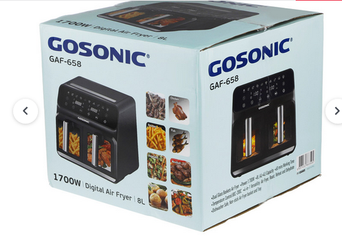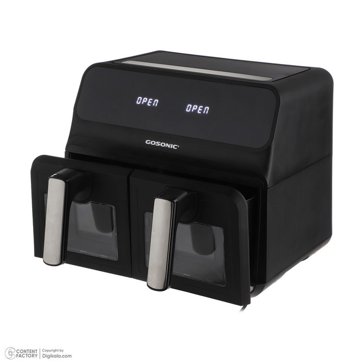 سرخ کن گوسونیک مدل GAF-658 یکی دیگر از دستگاههای بینظیر گوسونیک است که با قابلیت پخت انواع غذاها به بازار عرضه شده است. این سرخ کن دارای توان ۱۷۰۰ وات بوده و قادر است غذاهای شما را در کوتاه ترین زمان آماده گرداند. این دستگاه به دو محفظه مجهز شده است که به صورت کاملا مجزا هستند از هم فعالیت کرده و در پخت همزمان دو غذای جداگانه شما را یاری میدهند. این سرخ کن بدون روغن از گوسونیک دارای یک پنل کنترلی کاملا لمسی میباشد که به کمک آن میتوانید به تنظیمات دستگاه دسترسی پیدا کنید و تنها با یک لمس غذای مورد علاقهی خود را آماده کنید. همچنین به کمک سیستم تایمر، غذاها را داخل دستگاه بگذارید و به کارهای دیگر رسیدگی نمایید. این دستگاه مجهز به ۱۰ برنامهی پخت از پیش تعیین شده است و به کمک آن میتوانید غذاهایی مانند؛ سیب زمینی، مرغ، استیک، میگو، کیک، ماهی، پیتزا، سبزیجات، میوه خشک کن و ... را در یک چشم به هم زدم آماده نمایید.