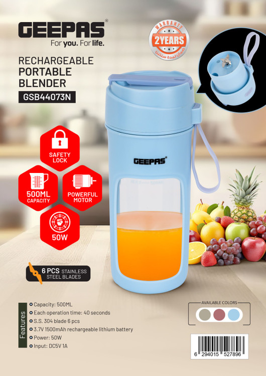 اسموتی ساز شارژی جیپاس مدل GSB44073 قابل حمل دارای تیغههای فولادی ضد زنگ 3 بعدی و سرعت چرخش بالا با موتور مسی قدرتمند 50 واتی است. آنها با هم ترکیب میشوند و مخلوط کن را بسیار قدرتمند از دیگران میکنند. طعم آب میوه، اسموتی یا شیک بسیار بهتر خواهد بود. همچنین این دستگاه همراه با باتری با ماندگاری بالا، میتواند نوشیدنی را تا 10 بار با یک بار شارژ آماده کند.