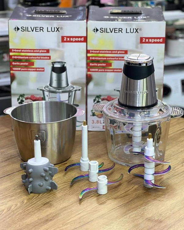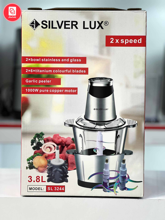 خردکن سیلور لوکس 2 کاسه مدل SL-3244 از محصولات کاربردی این کمپانیست که امروزه بسیار پر طرفدار میباشد. این محصول برای افرادی که وقت کافی برای آشپزی ندارند و میخواهند از غذای سالم و لذت ببرند بسیار مناسب است چرا که به کمک این دستگاه در زمانی کوتاه میتوانند غذای موردنظر را آماده کنند. این خرد کن دارای توان ۱۰۰۰ وات بوده که نشان از قدرت بالای موتور است. ظرفیت مخزن در این خرد کن ۳ لیتر بوده که برای مهمانی های جمعیت بالا نیز کاربرد دارد. جنس بدنه این دستگاه از استیل ضد زنگ بوده و دارای مقاومت بالایی است. همچنین شاهد یک مخزن بزرگ از جنس شیشهی محکم و یک مخزن از جنس استیل هستیم که میتوانیم موادغذایی را در هنگام خرد شدن مشاهده نماییم. این خرد کن مجهز به تنظیمات سرعت در ۳ حالت مختلف نیز هست. این دستگاه برای خرد کردن انواع موادغذایی مانند؛ گوشت قرمز، مرغ و ماهی، سبزیجات مختلف، پیاز و سیب زمینی، دانه های قهوه، چوب دارچین و سایر ادویه ها، تهیه پوره های مختلف، تهیهی مایه کتلت و کوکو ، انواع معجون و اسموتی و ... بسیار کاربردی عمل میکند.