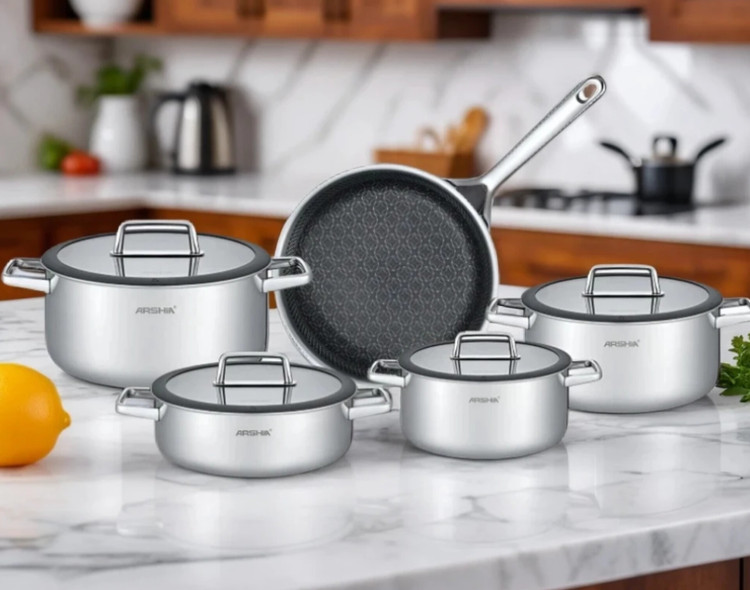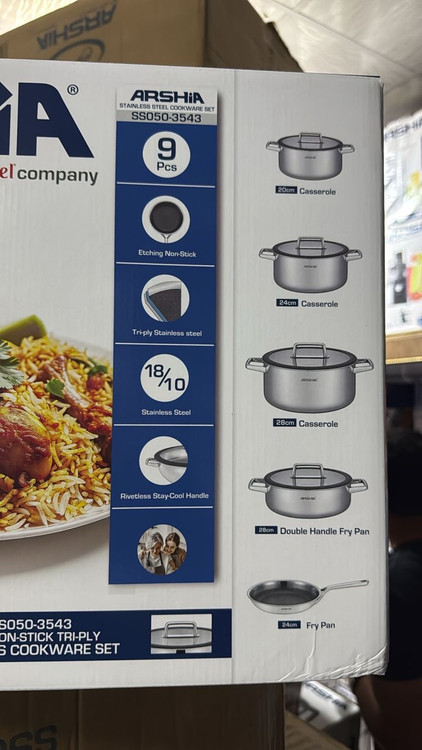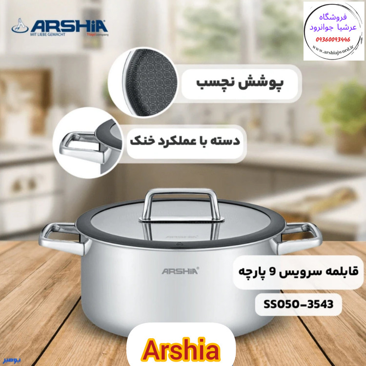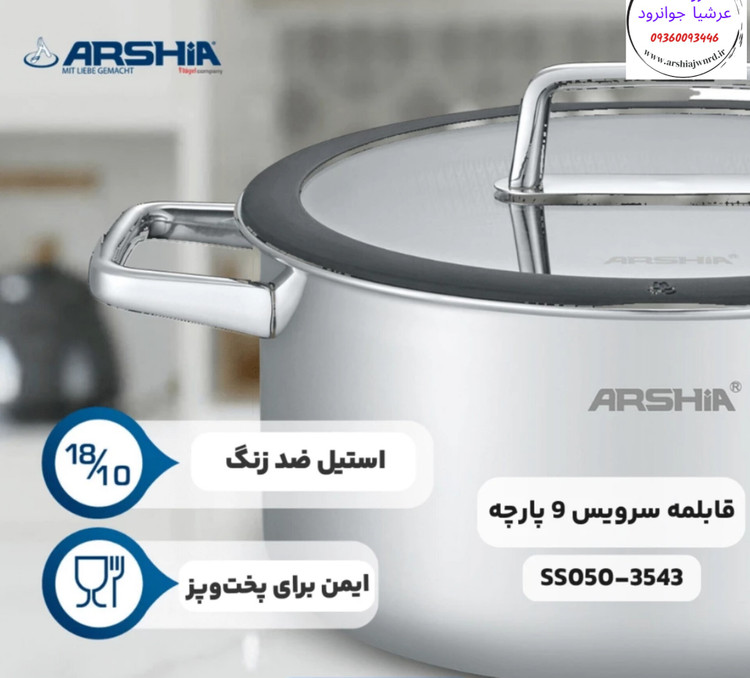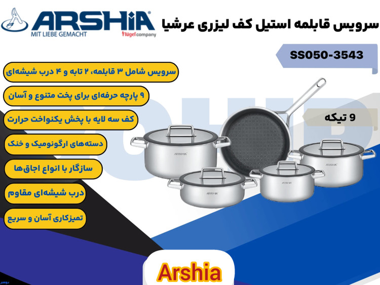مشخصات سرویس قابلمه 9 پارچه استیل کف لیزری عرشیا مدل SS050-3543