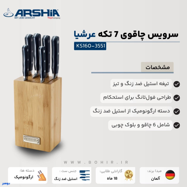 - طراحی و ویژگی های سرویس چاقوی 7 تکه عرشیا KS160-3551